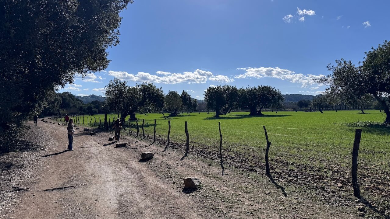 The walk starts from the well-signposted entrance to the Ses Fonts Ufanes estate, just before the entrance to the Coves de Campanet. From here, a well-marked dirt track leads along fields before entering the forest.